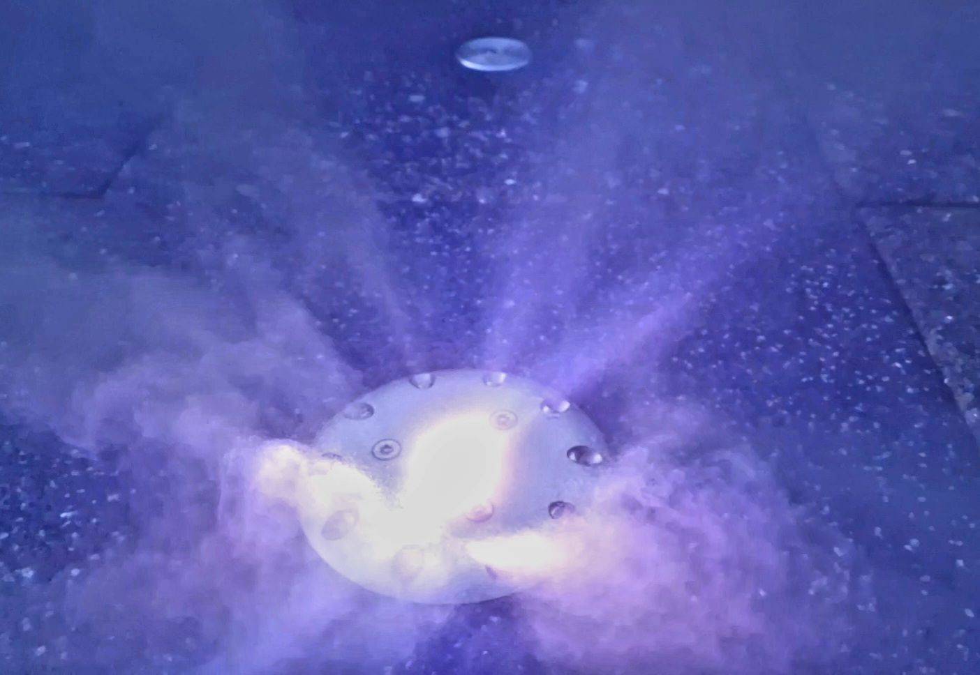 CULA kühlt nicht nur effektiv – es inszeniert Räume. Durch die Kombination von ultrafeinem Wassernebel mit Lichteffekten entsteht ein beinahe magischer visueller Effekt, der Außenbereiche in eine neue Erlebniswelt verwandelt. Besonders bei Dämmerung und Nacht entwickelt der sanfte Nebel in Verbindung mit Licht eine ästhetische Wirkung, die zum Verweilen, Staunen und Wohlfühlen einlädt.